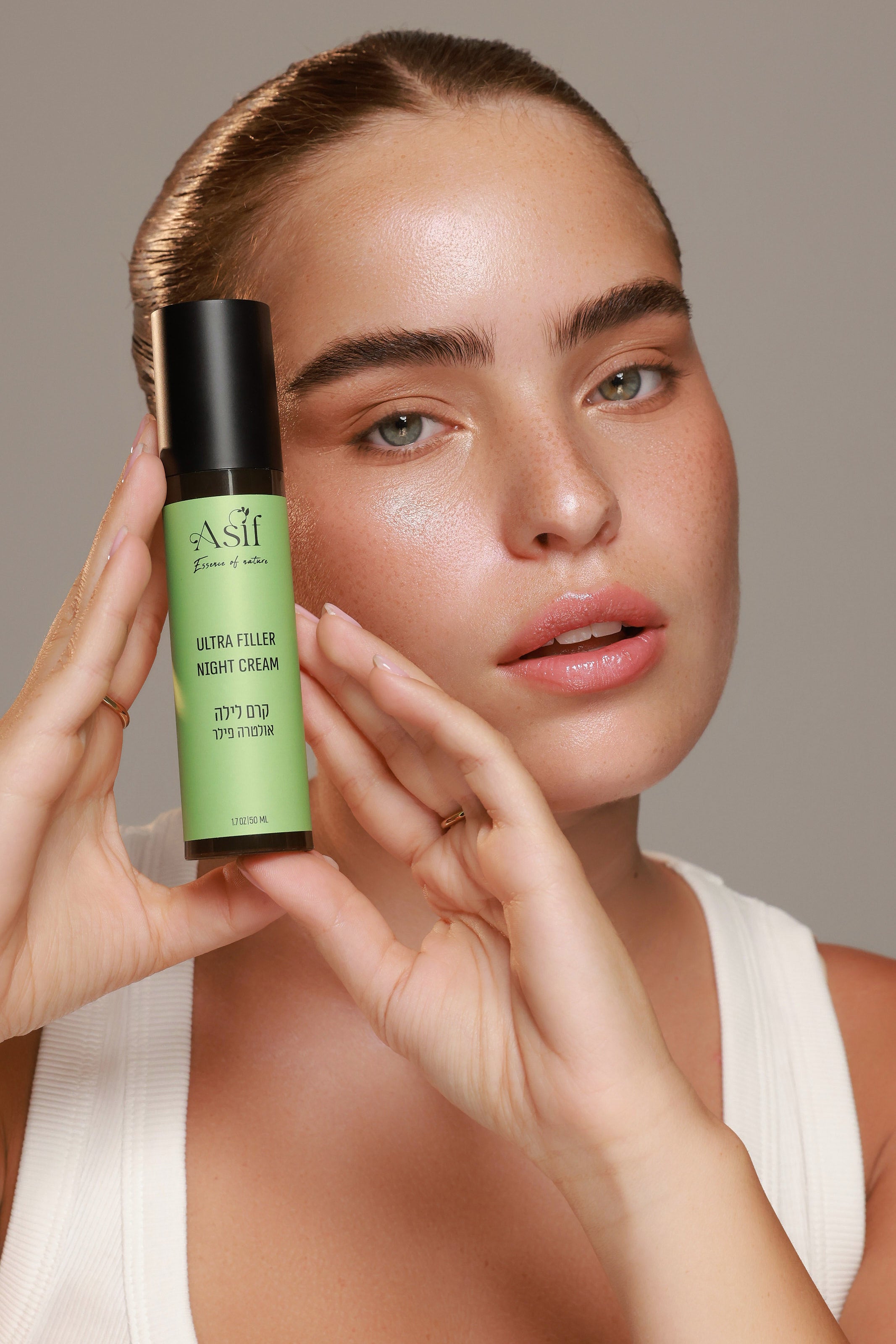 לגלות את העתיד של טיפוח העור עם קרם הלילה המהפכני של אסיף, המבוסס על מחקר קליני מתקדם. הפורמולה שמשקמת את מערכת ההגנה הטבעית של העור, משפרת את גמישותו ומפחיתת היפר-פיגמנטציה, כל זאת תוך מספר שעות מרגע השימוש. הקרם משלב חומצה היאלורונית מתקדמת עם שלוש מולקולות בגדלים שונים, המחליקות קמטים ומחדירות לחות עמוקה לעור. בנוסף, הוא מכיל ניאצינמיד, שמגן מפני נזקי קרינת השמש, מפחית היפר-פיגמנטציה ומבהיר את העור. תוצאות מחקר קליני מראות שיפור מדיד בטקסטורת העור כבר לאחר שימוש ראשון.